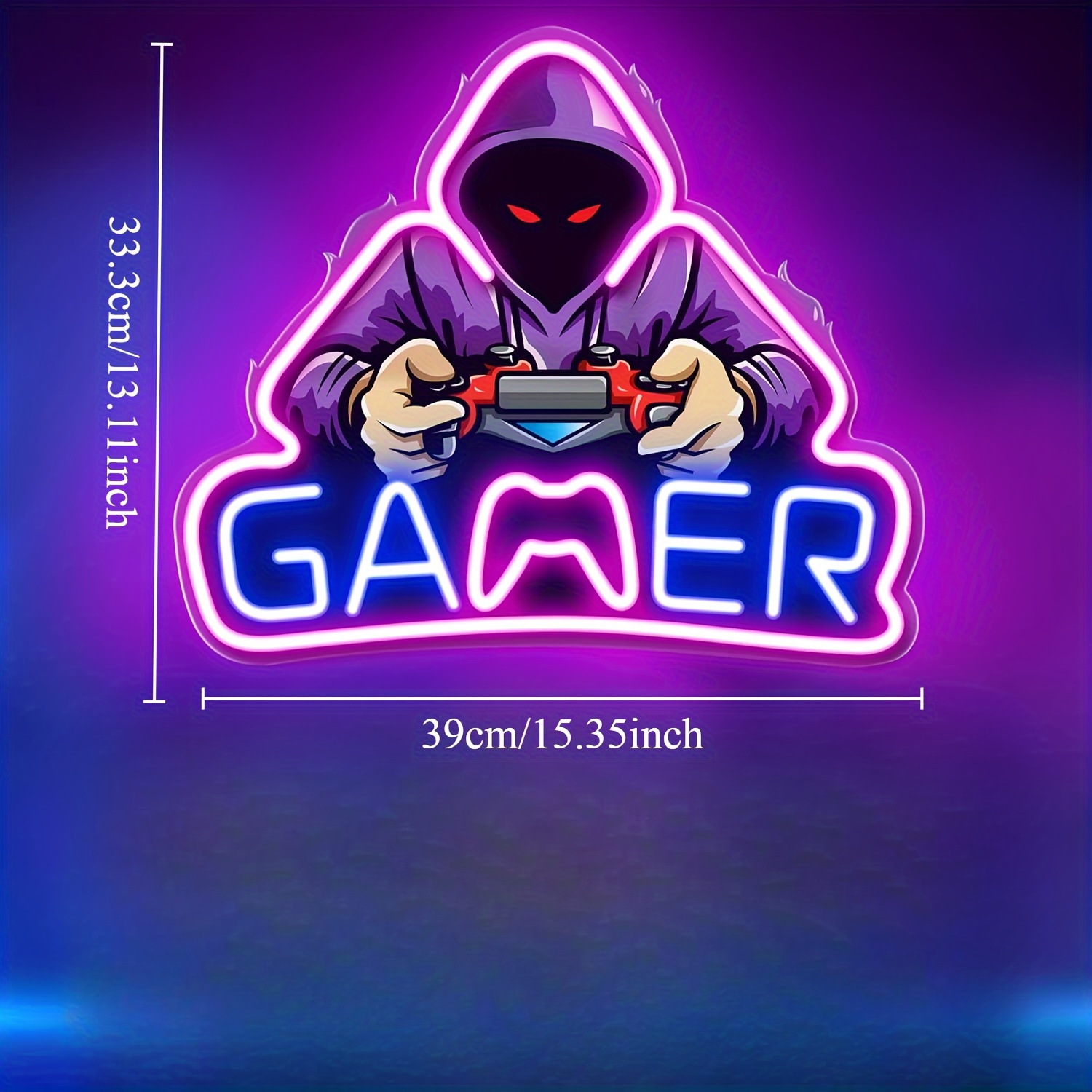 Gamer Neon Sign - USB Powered, UV Printed, Adjustable Brightness for Gaming Room, Bedroom & Living Wall Decor - Perfect Holiday or Birthday Gift