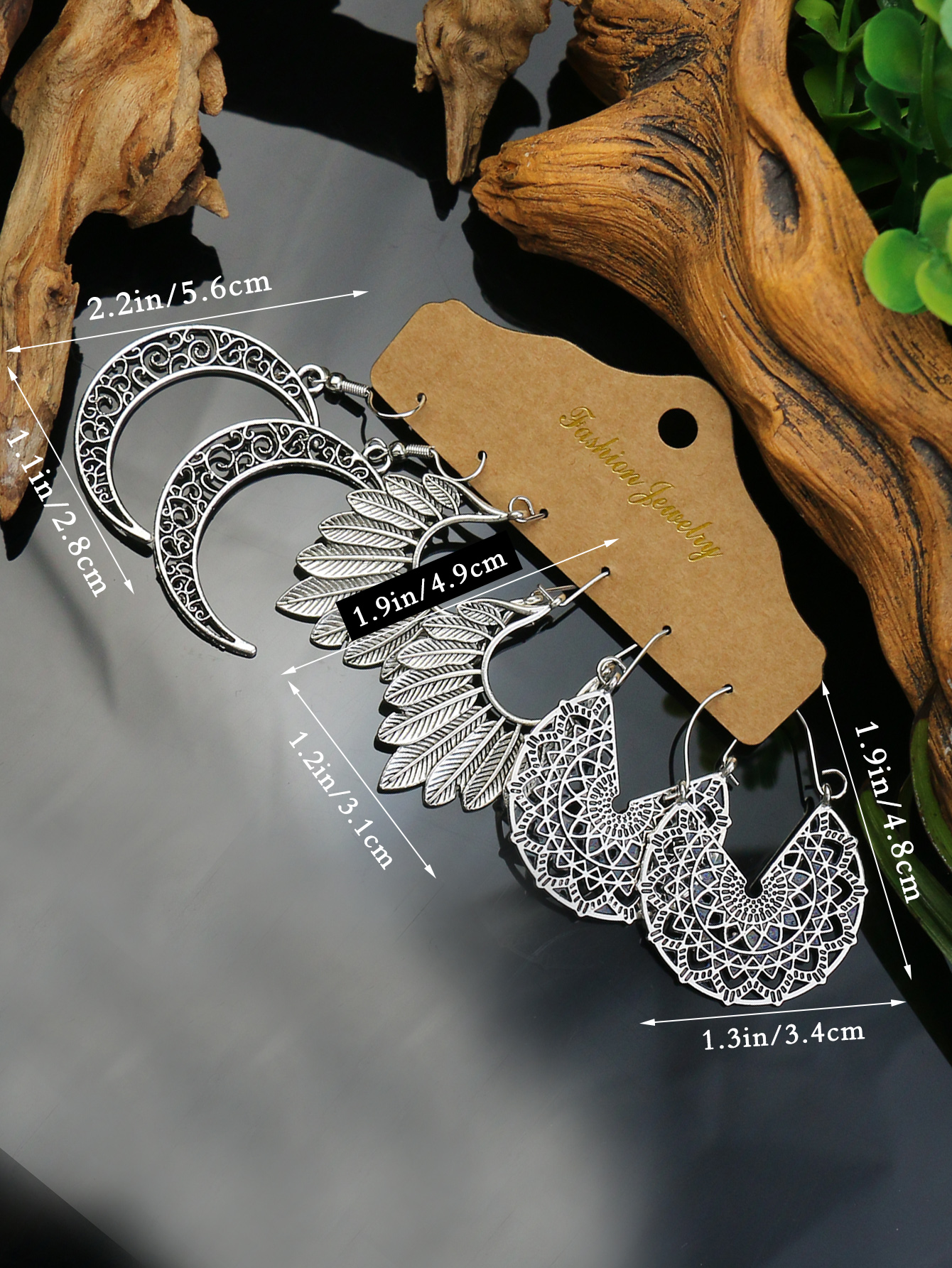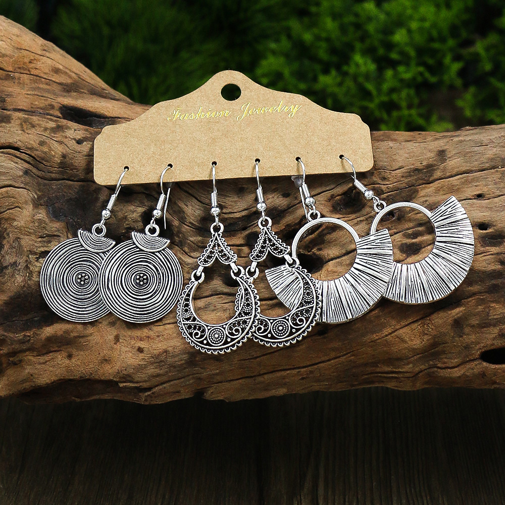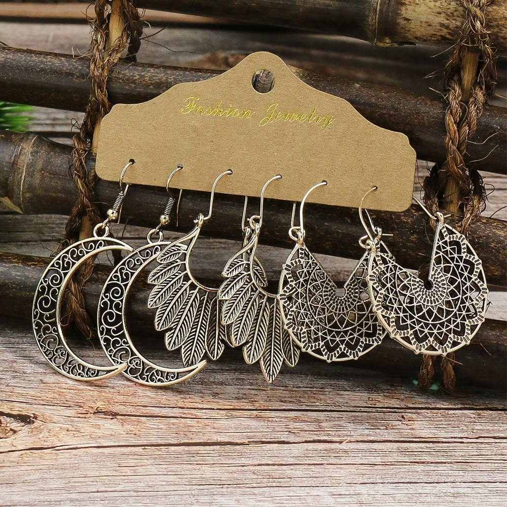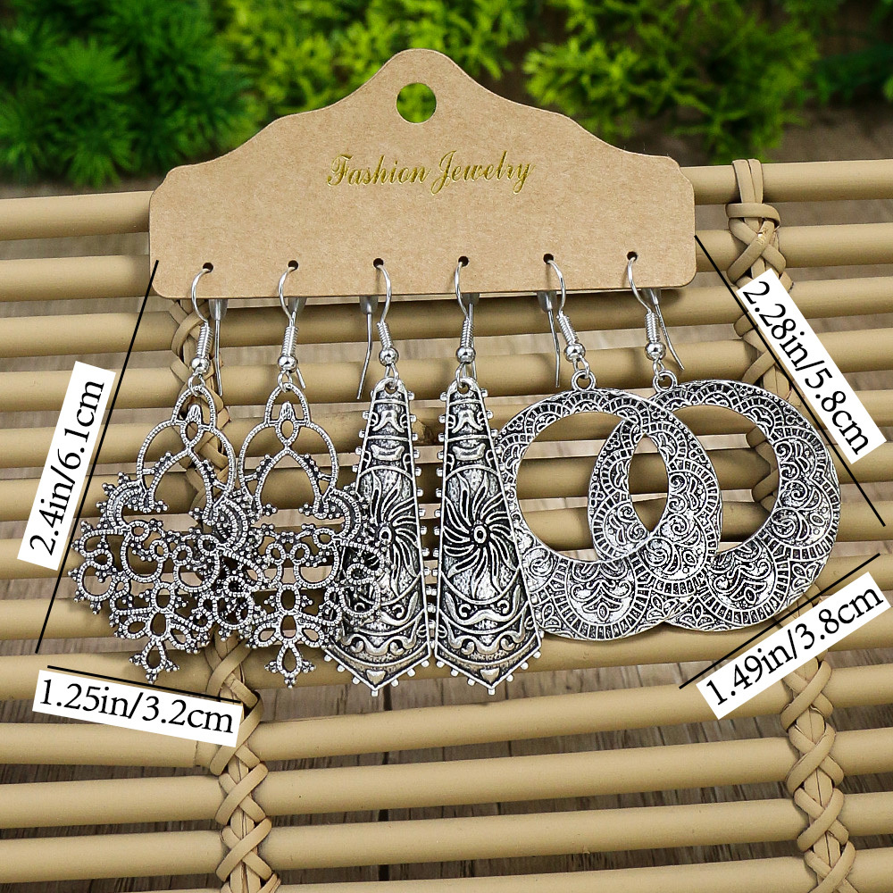 Boucles d’oreilles femme rétro – Lot de 3 paires – Feuille géométrique ajourée et forme U – Style simple et polyvalent