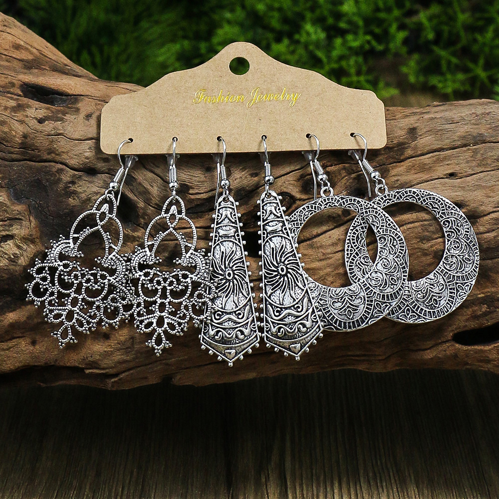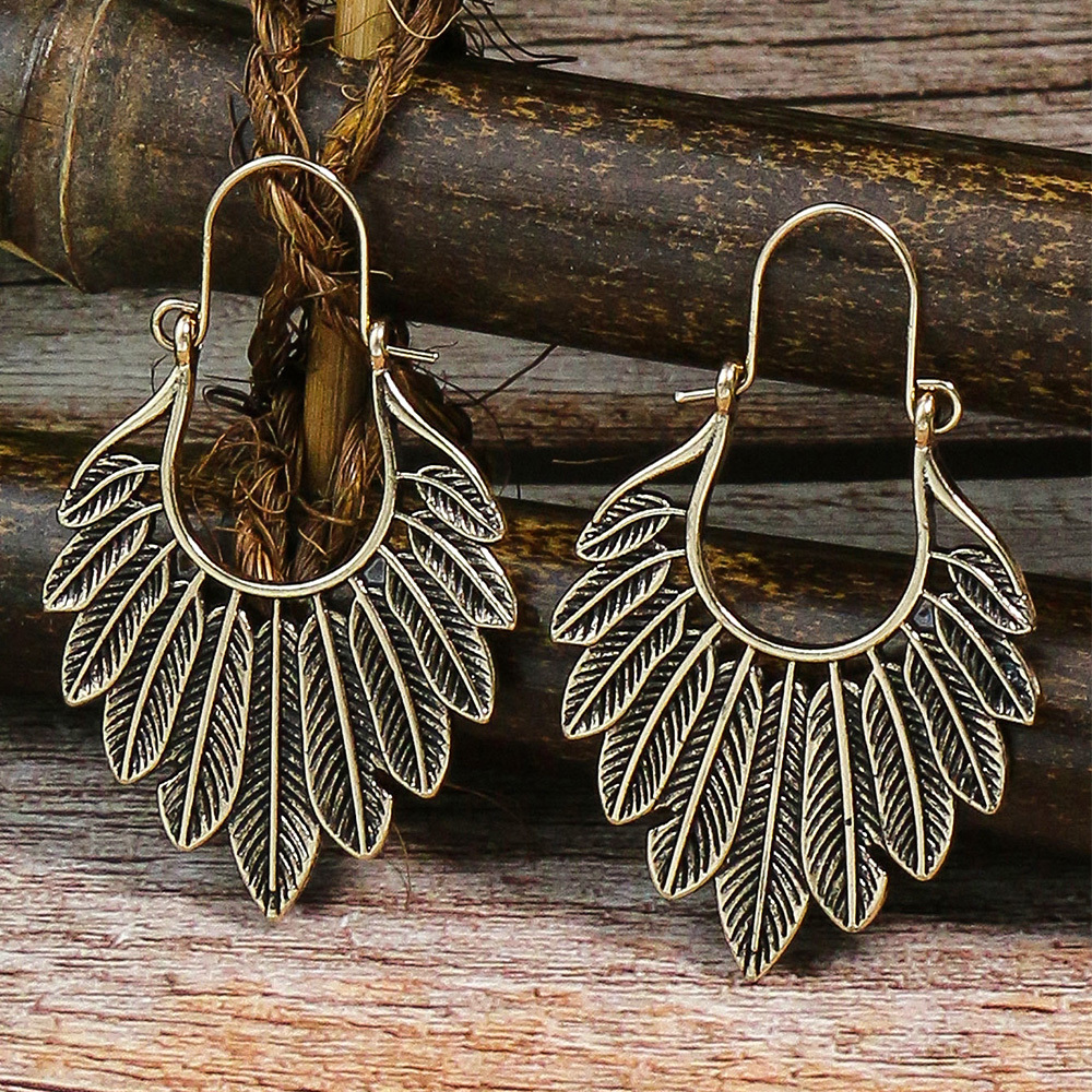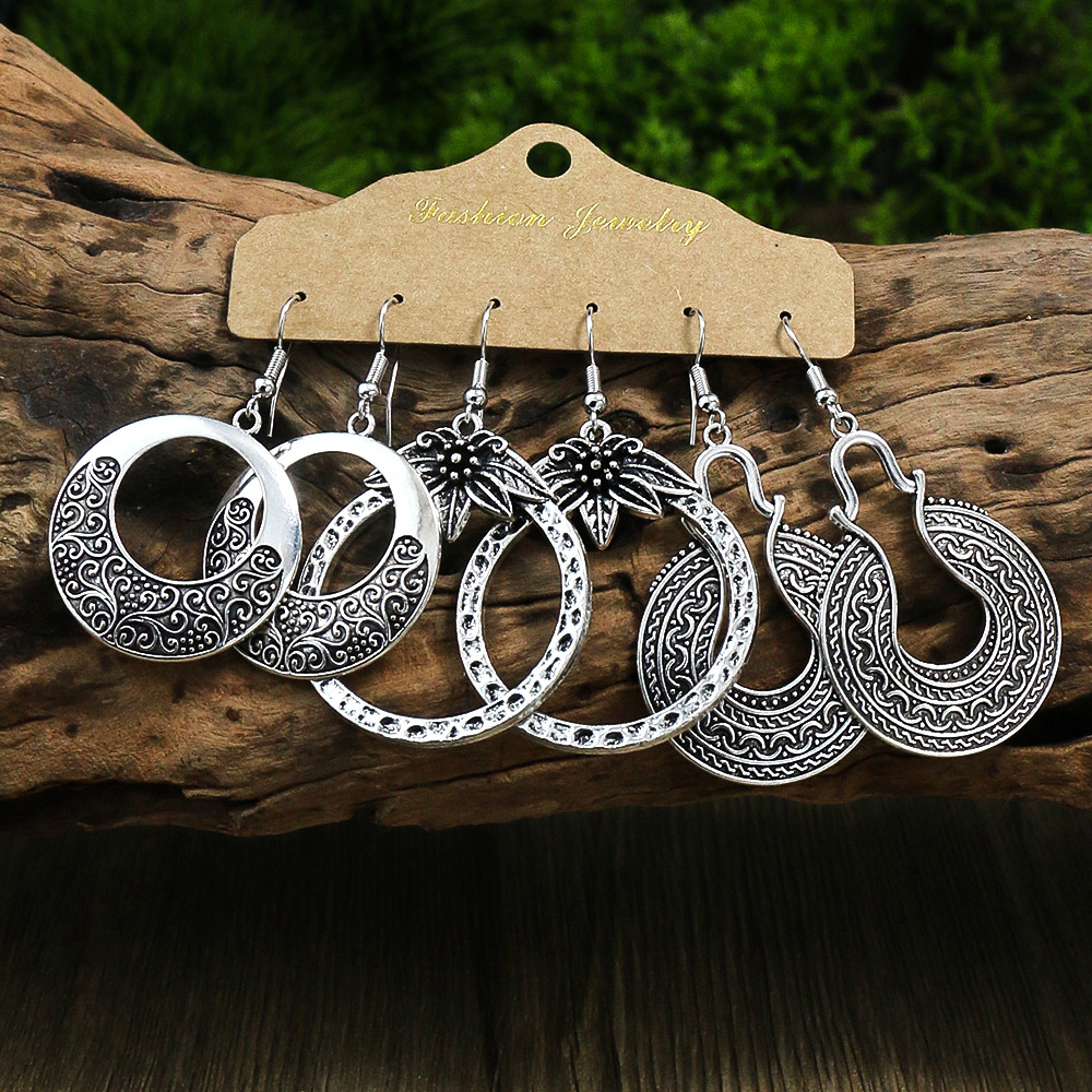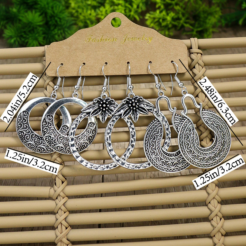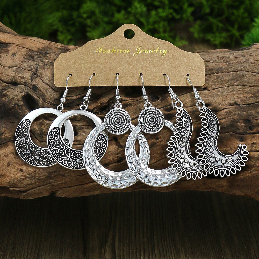Boucles d’oreilles femme rétro – Lot de 3 paires – Feuille géométrique ajourée et forme U – Style simple et polyvalent